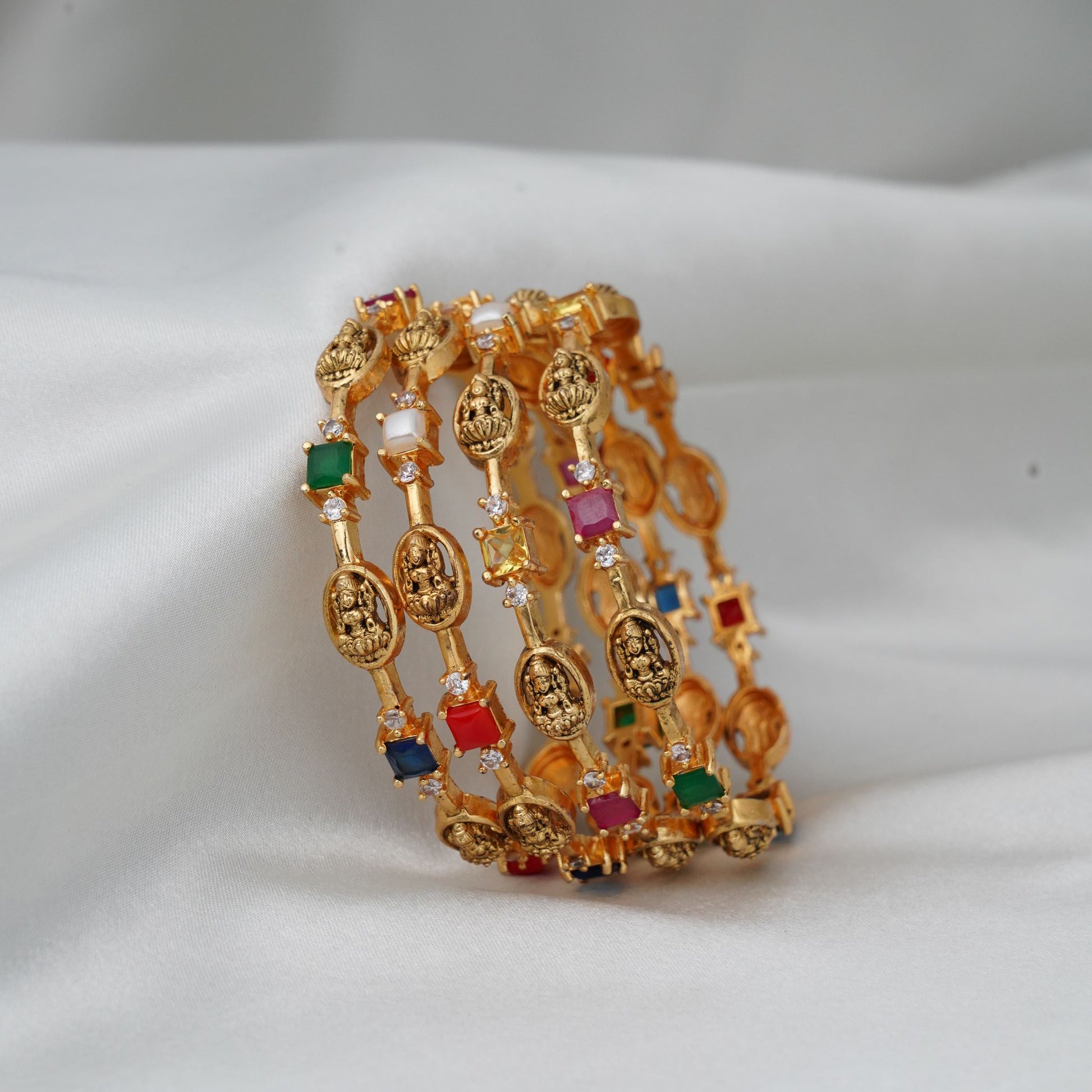 Celebrate tradition with our Coral & Lakshmi bangles—vivid coral accents paired with the timeless Lakshmi motif for a striking, festive statement.
