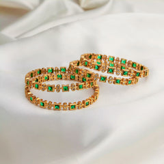 Choose your shade—vibrant green or subtle white—and shine with these sparkling statement bangles. Perfect for every festive or everyday look!