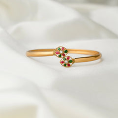 Designed with vibrant red and green enamel paired with a shimmering white stone, creating a graceful ethnic touch.