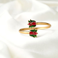 Lotus-inspired floral detailing with refined pink and green enamel adds a classy touch with rich, vibrant charm.