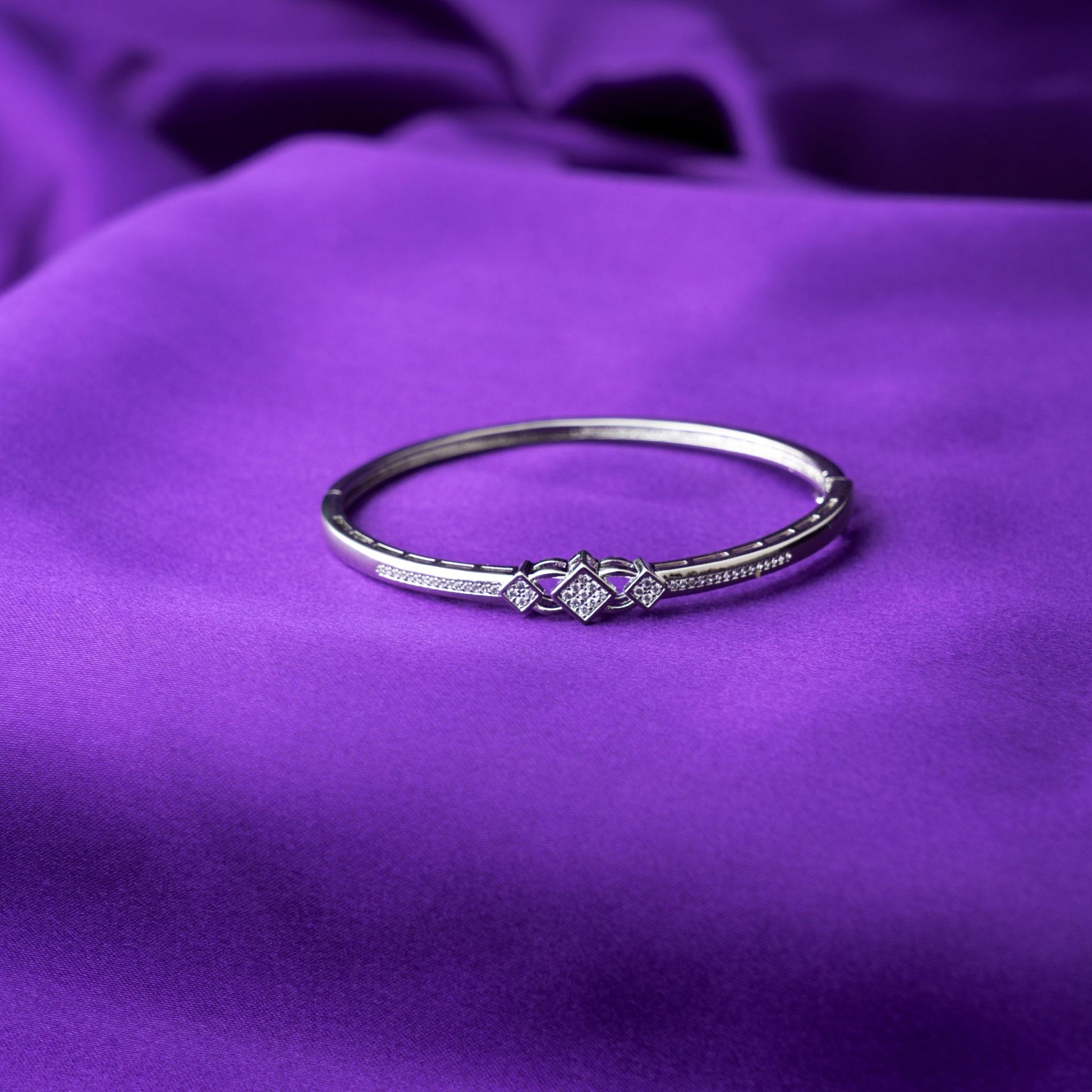 Turn every moment into a statement with this radiant silver-tone bangle. Featuring three brilliant crystal-studded motifs and a sleek, modern finish, it’s the perfect piece to elevate your style and make any outfit shine.