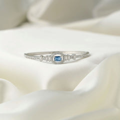 The bracelet highlights a bold blue stone at the center, surrounded by sparkling white stones that elevate its shine.