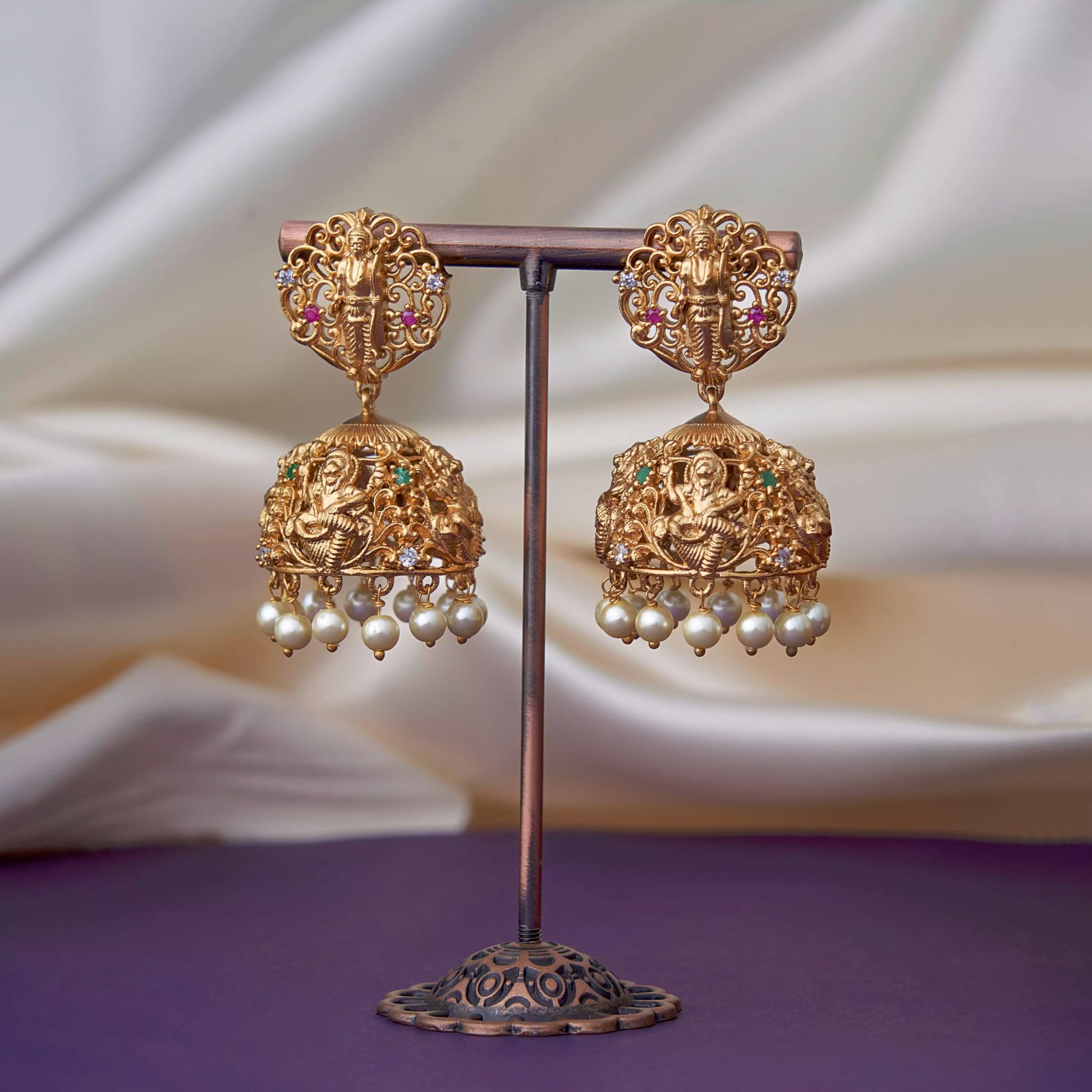 Elegant Dasavataram haaram beautifully crafted with detailed depictions of Lord Vishnu’s avatars, enhanced with delicate pearl embellishments. Comes with matching earrings, making it a perfect choice for weddings, festivals, and traditional occasions.