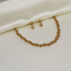 A beautiful, elegant gold Designer necklace featuring a simple yet classy Design. Available in two variants and comes with matching earrings.