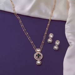 A double layer rose gold chain with an elegant pendant adorned with green and white stones, paired with matching earrings to complete your look.