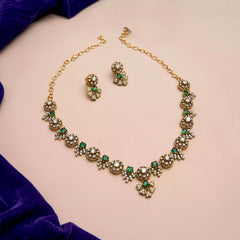Charming white and green stone floral Design that adds a bright, refreshing appeal, comes with matching earrings to complete the look.