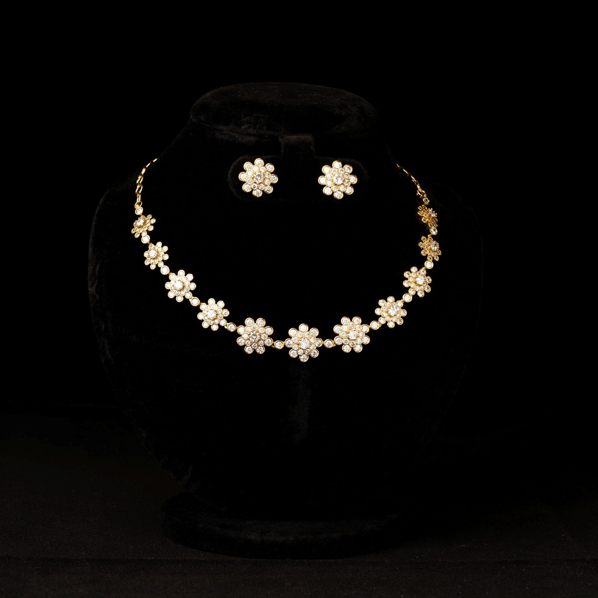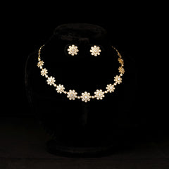 A charming floral necklace featuring delicate white stone work, paired with matching studs.