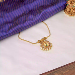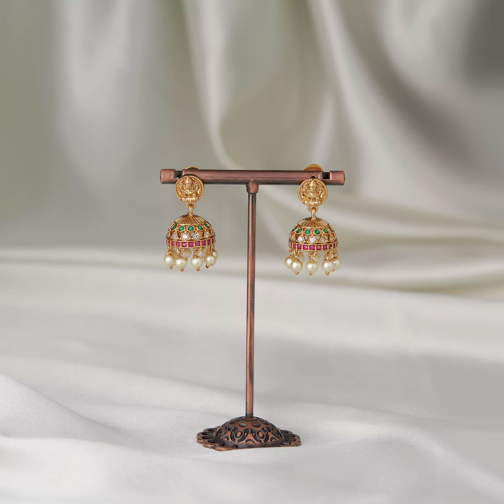 Elevate your festive jewellery collection with this elegant Lakshmi Attigai/ Naanu paired with matching jhumka earrings, perfect for a rich and traditional statement.