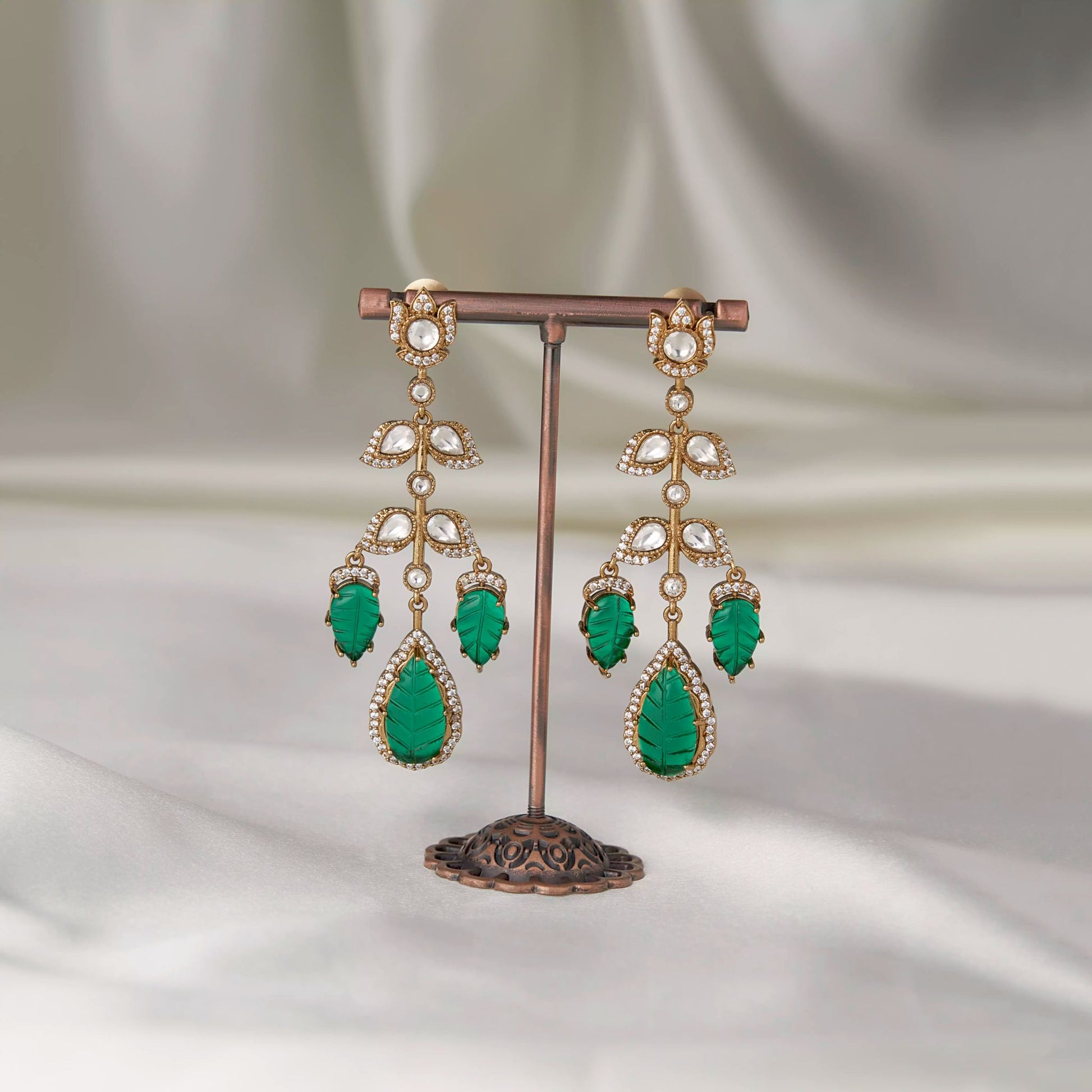 Moissanite earrings with vibrant green stones, Designed to sparkle beautifully with every move. A perfect blend of brilliance and color, paired with matching earrings for an elegant, eye-catching finish.