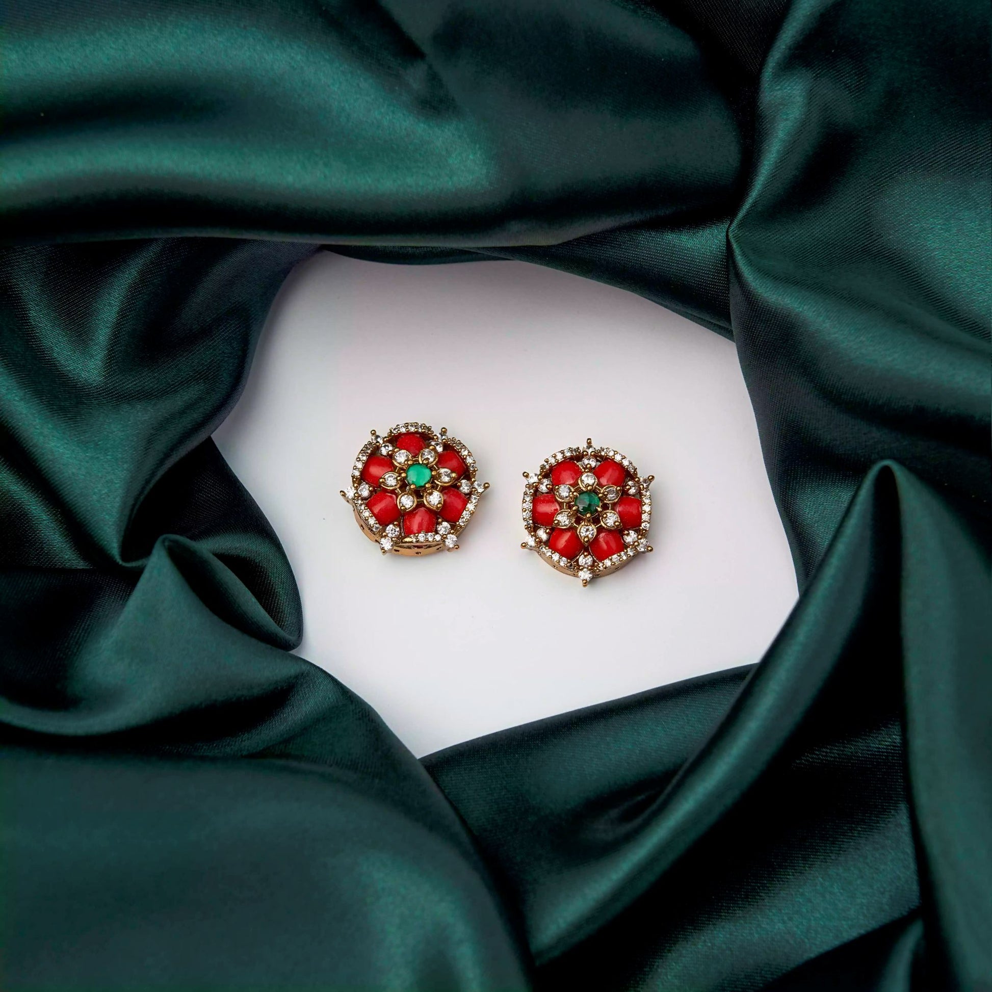 Bright coral stones set in a clean, polished finish that adds instant warmth to your look. These studs make a strong yet refined statement—perfect for festive wear, parties, and special occasions. Easy to style, hard to miss.