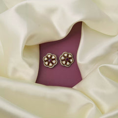 Choose from vibrant green or regal purple floral polki studs for a sparkling accent that steals the spotlight.